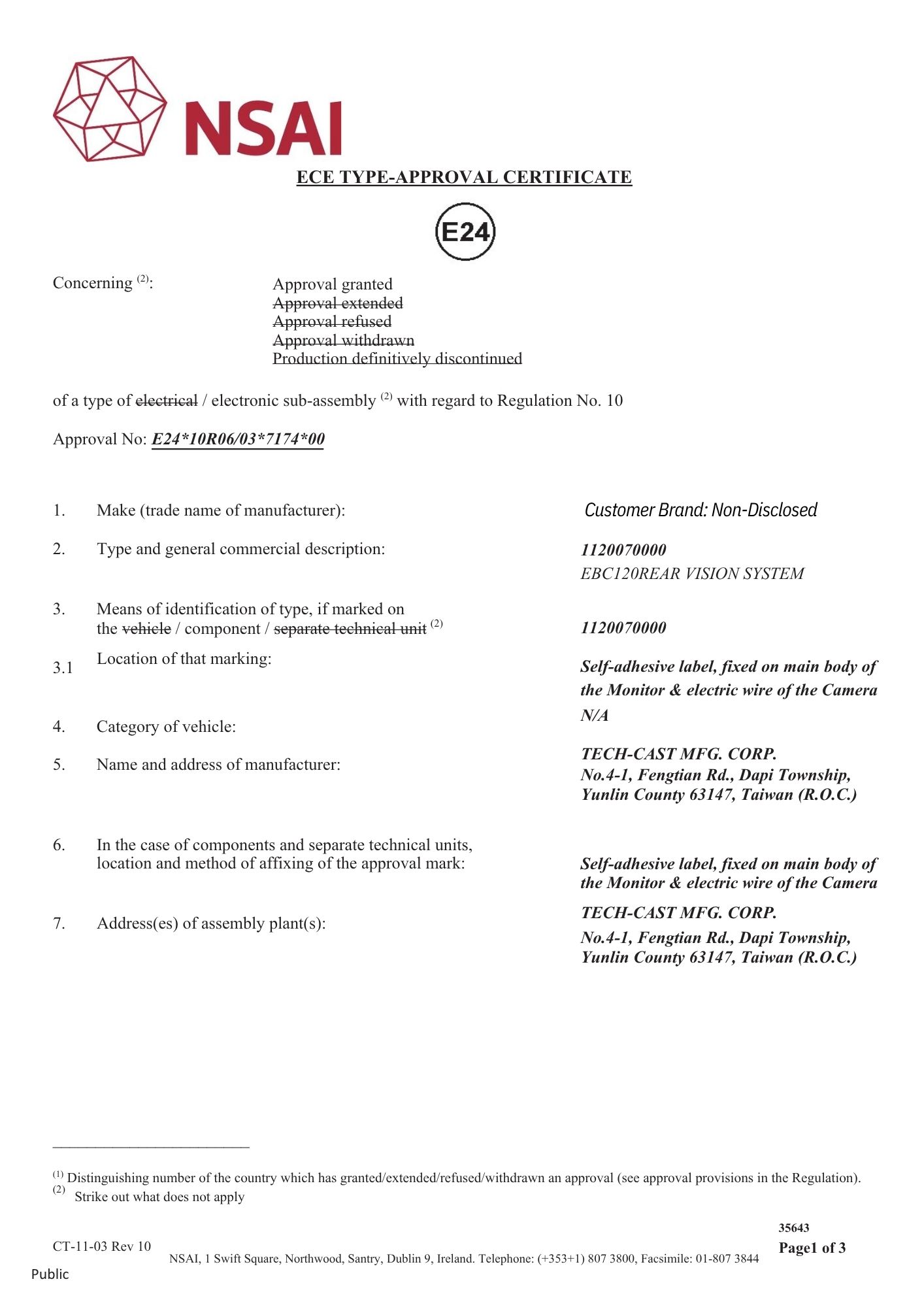 UN/ECE R10- E Mark Certificate-Rear Vision System (RVS)